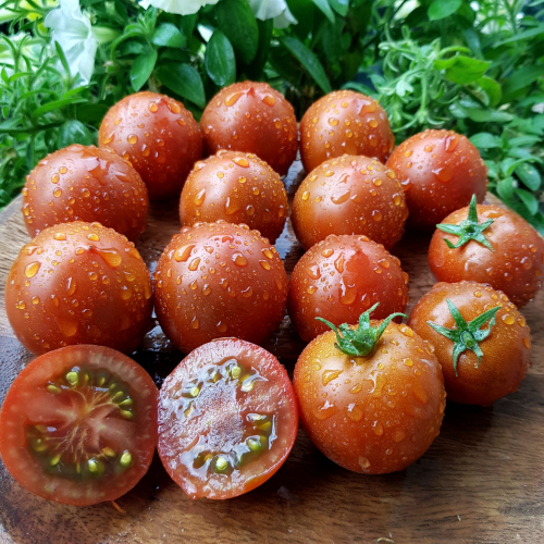 Штамб, среднеранний, 0,6-1 м в зависимости от условий. Помидоры пурпурно-фиолетовые с шоколадным оттенком, на разрезе коричнево-бордовые. Округлые, одномерные во всех кистях, 45-50 грамм. Отличный сорт для консервации. Плотные, сильный пряно-сладкий вкус, яркий аромат. Куст можно выращивать с минимальным формированием. Лист обычный морщинистый. Урожайность высокая.