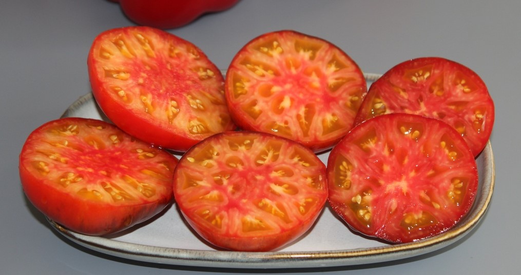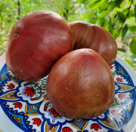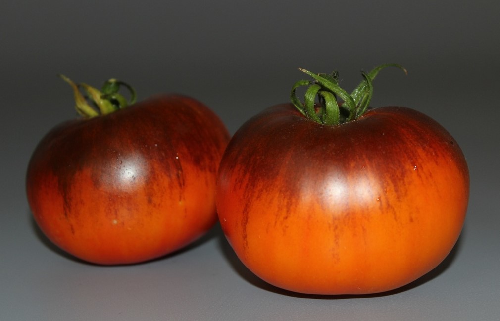 Плоды плоскоокруглые, оранжевые с фиолетовой шапочкой, мясистые, на вкус насыщенно сладкие с фруктово-ягодными оттенками. По всем параметрам положительный сорт, для ценителей вкуса особенно.