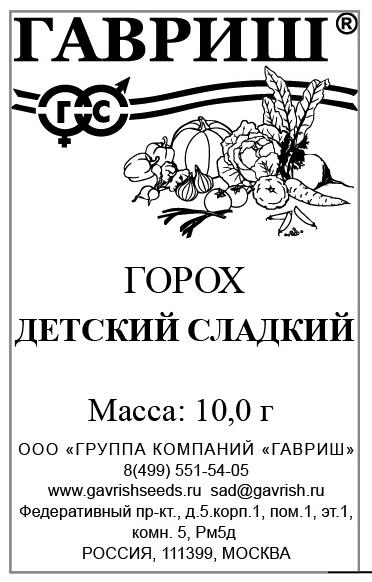 Горох б/п Детский сладкий, сахарный 10 г Гавриш