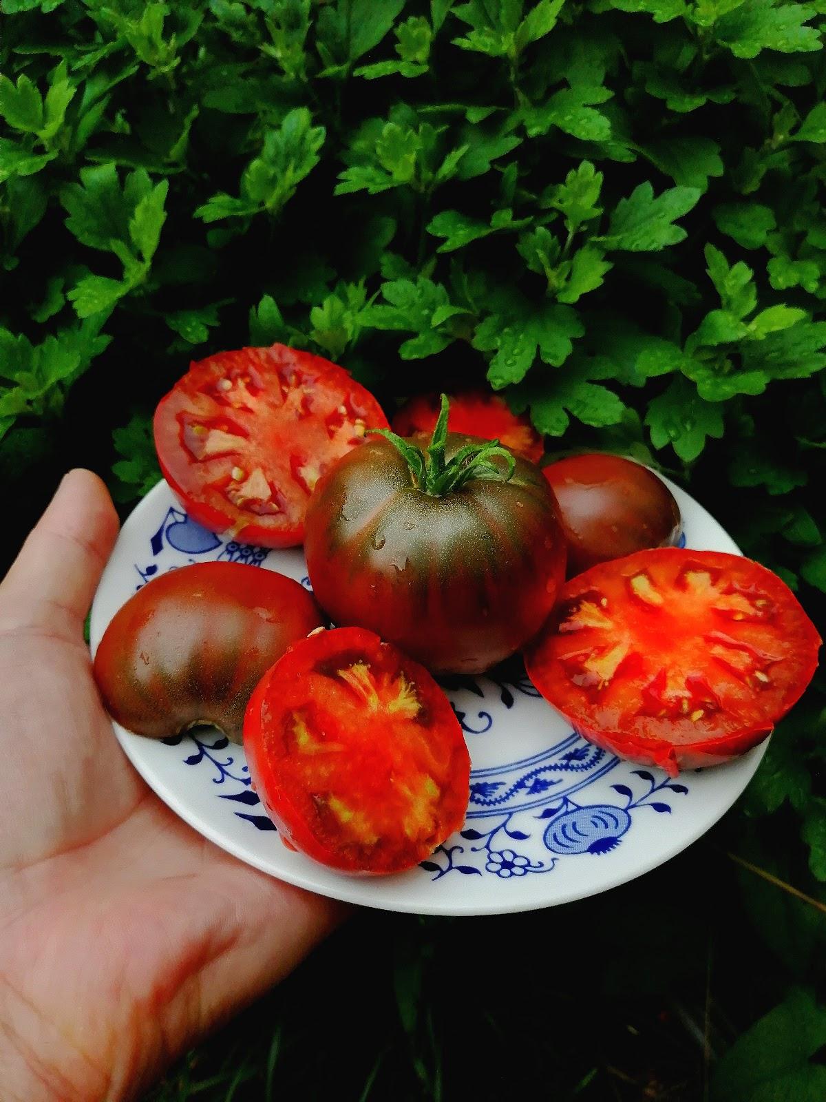 На каждой кисти формируется 5-8 завязей. Созревает томат на 110-120 день от посева семян. Форма томата плоскоокруглая, могут быть сильно- или слаборебристыми. В стадии биологической зрелости плоды достигают массы 300-400 грамм, цвет томата – темно-красный с коричневым отливом. Сердцевина мякоти плотная, цвет ее красный. С одного куста урожайность в среднем составит 5-6 кг.Сорт для свежего потребления, переработки в соусы и томатный сок. Для получения больших плодов по 400 грамм, растение формируют в 1 стебель. Сорт достаточно устойчив к бактериальным заболеваниям. Слово "мясо" в названии сорта не случайно!