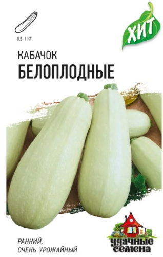 Раннеспелый (46-57 дней от всходов до начала созревания). Растение кустовое, сильноветвистое. Плод короткоцилиндрический, с ребристостью к плодоножке. Окраска плода в технической спелости светло-зеленая. Мякоть белая, средней плотности. Масса товарного плода 0,7-1,3 кг. Сорт относительно устойчив к гнилям подов. Рекомендуется для домашней кулинарии. Выращивают рассадным способом и прямым посевом в грунт. Посев на рассаду — в апреле, высадка рассады в грунт — в мае-июне. Посев непосредственно в грунт — в конце мая-начале июня. Хорошо отзывается на внесение органических удобрений. Схема посева: 60х60 см.