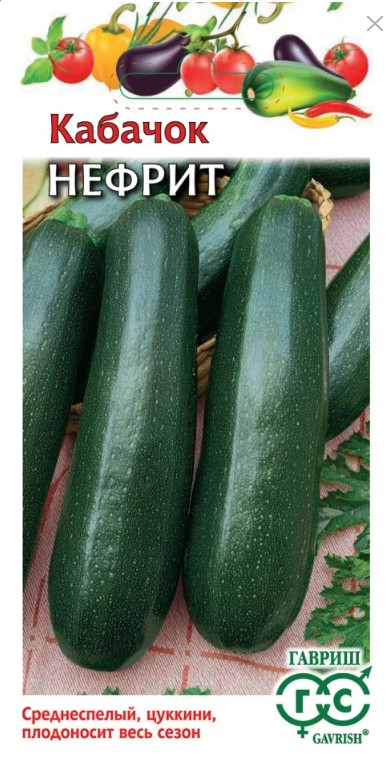 Среднеспелый (53-58 дней от полных всходов до первого сбора) кабачок-цуккини с интенсивным плодоношением. Растение кустовое, малоплетистое. Плод цилиндрический, гладкий, темно-зеленый с рисунком в виде крапчатости, массой 0,7-1,2 кг. Мякоть светло-кремовая, толстая, сочная, нежная, отличного вкуса. Достоинства сорта: продолжительное плодоношение. Урожайность 5,4-11,0 кг/м2. Выращивают прямым посевом в открытый грунт в конце мая — начале июня на глубину 5-6 см по схеме 70х100 см. Плоды употребляют в вареном, тушеном и жареном виде, а также свежими (молодые завязи) в салатах. Из них получается аппетитное консервированное ассорти. Зрелые крупные плоды хранятся до 4 месяцев.