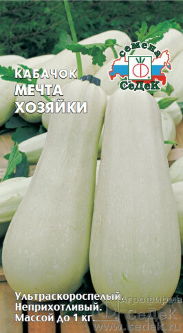 Ультраскороспелый (от всходов до спелости плодов 42-45 дней) сорт. Куст средней мощности, малооблиственный. Плоды многочисленные, цилиндрические, белые, тонкокорые, массой 0,6-1,0 кг. Мякоть кремовая, плотная, сочная, нежная. Вкусовые качества высокие. Ценность сорта: обладает устойчивостью к серой гнили, мучнистой росе и антракнозу, холодостойкость, неприхотливость выращивания, товарность, высокие диетические качества. Рекомендуется для всех видов кулинарной переработки.