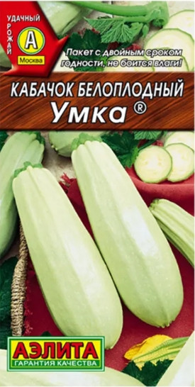 Хорошо известный, неприхотливый белоплодный сорт. Раннеспелый , от всходов до первого съема плодов 40-44 дня. Растения кустовые, сильноветвящиеся. Плоды массой 0,5-1,3 кг. Мякоть кремовая, средней плотности, нежная, с великолепным вкусом. Рекомендуется для диетического питания, отлично подходит для приготовления различных зимних заготовок. Урожайность высокая 8-10 кг/м2.