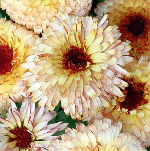 0,2 гр. Один из самых декоративных сортов календулы стал еще интереснее и элегантнее. Крупные, оригинальные соцветия приобрели новую, изысканную окраску. Отличная срезка на длинных цветоносах, добавит очарований букету. Особой красоты соцветия получаются при цветении в прохладную погоду. Условия выращивания. Культура неприхотлива, холодостойка и светолюбива. Легко выращивается посевом в грунт, глубина заделки семян 0,5 см. Предпочитает дренированные, нейтральные, суглинистые почвы, умеренный полив. Размещают на солнце, или полутени. высота до 45 см.