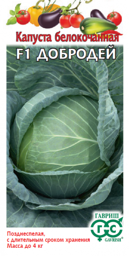 Капуста Добродей F1, 0,1 г ц/п Гавриш (поздняя, килоустойчивая)