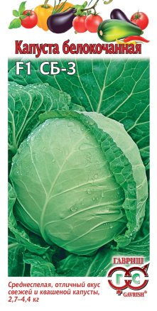 Капуста СБ-3 F1, 0,1 г ц/п Гавриш (среднеспелая)