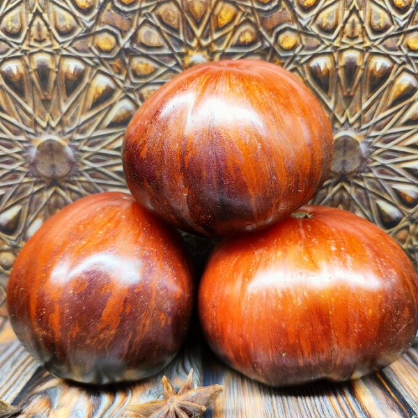Среднеспелый. Высота куста 1,8-2м. Плоды весом 100-150г. Огромные, очень здоровые, не подверженные болезням кусты плодоносят до поздней осени. Плоды суперкрасивые, округлой или слегка овальной формы, ярко-малинового цвета с синей шапочкой, и фиолетовыми полосами. Мякоть насыщенно-малиново-розового цвета, очень сочная, с фруктовым ароматов и отличным вкусом, в котором гармонично сочетается и сладость, и кислинка.