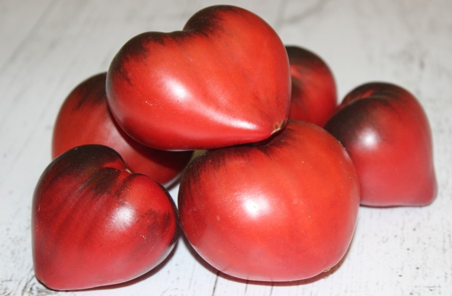 Куст высокий, в теплице до 2-х метров, стебли довольно тонкие, изящные, с поникающими листьями. Кисти большие. Плоды выровненные, среднего размера массой 120-200 г, плотные, чаще широкосердцевидной формы, с характерным носиком. Вкус очень хороший, сладкий, с приятным фруктовым послевкусием. Мякоть нежная, красная. Урожайность очень высокая. Плоды могут очень долго висеть на кустах, не перезревая и не растрескиваясь.