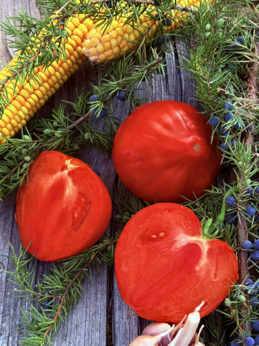 Белорусский сорт, индетерминантный, среднеспелый, высотой до 1.8 м, с крупными округло-сердцевидными красными плодами весом до 700 г. Он ценится за сладкий вкус и мясистую мякоть, что делает его подходящим для салатов и бутербродов.