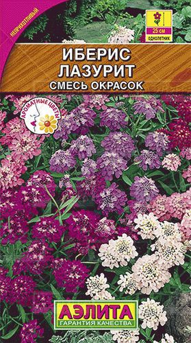 Красивейшая смесь сортов высотой до 20 см. Ее цветение столь обильно, что под шапками зонтиковидных соцветий размером 5-6 см не видно листьев! Медовый аромат ибериса распространяется далеко за пределы балкона, наполняя комнаты и окружающее пространство благоуханием. Смесь ценится за гармоничную окраску соцветий из близких по тону фиолетовых, лиловых и голубых тонов. Отлично сочетается с бархатцами. Иберис неприхотлив к почвам, холодостоек. Посев семян на рассаду производят в марте-апреле. Оптимальная Им необходима ранняя прищипка, своевременное удаление завядших соцветий.