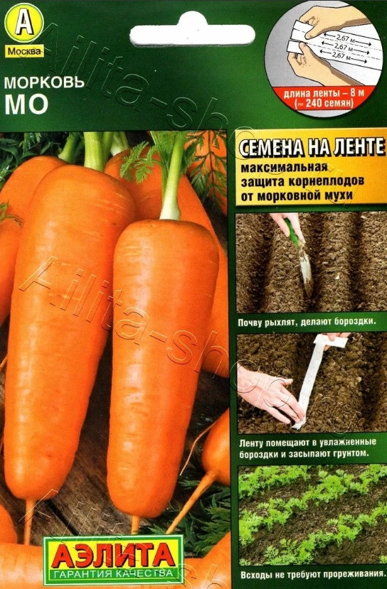 Семена на ленте – очень просто и удобно! Семена тщательно подготовлены к посеву и находятся между двумя тонкими слоями ленты, полностью растворимой во влажной среде. Материал ленты – 100% целлюлоза, не содержит клея. Технология запатентована. Общая длина ленты – 8 м. Лента состоит из трех частей. Перед использованием их нужно отделить друг от друга и расправить. Длина каждой части – 2,67 м. На каждой части располагаются ≈ 80 семян моркови (всего ≈ 240 шт.).