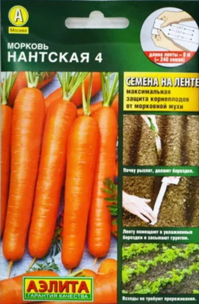 Семена на ленте – очень просто и удобно! Семена тщательно подготовлены к посеву и находятся между двумя тонкими слоями ленты, полностью растворимой во влажной среде. Материал ленты – 100% целлюлоза, не содержит клея. Технология запатентована. Общая длина ленты – 8 м. Лента состоит из трех частей. Перед использованием их нужно отделить друг от друга и расправить. Длина каждой части – 2,67 м. На каждой части располагаются ≈ 80 семян моркови (всего ≈ 240 шт.).