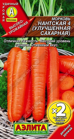 Морковь Нантская 4 (улучшенная сахарная) 4 г ц/п Аэлита (дв. объем)