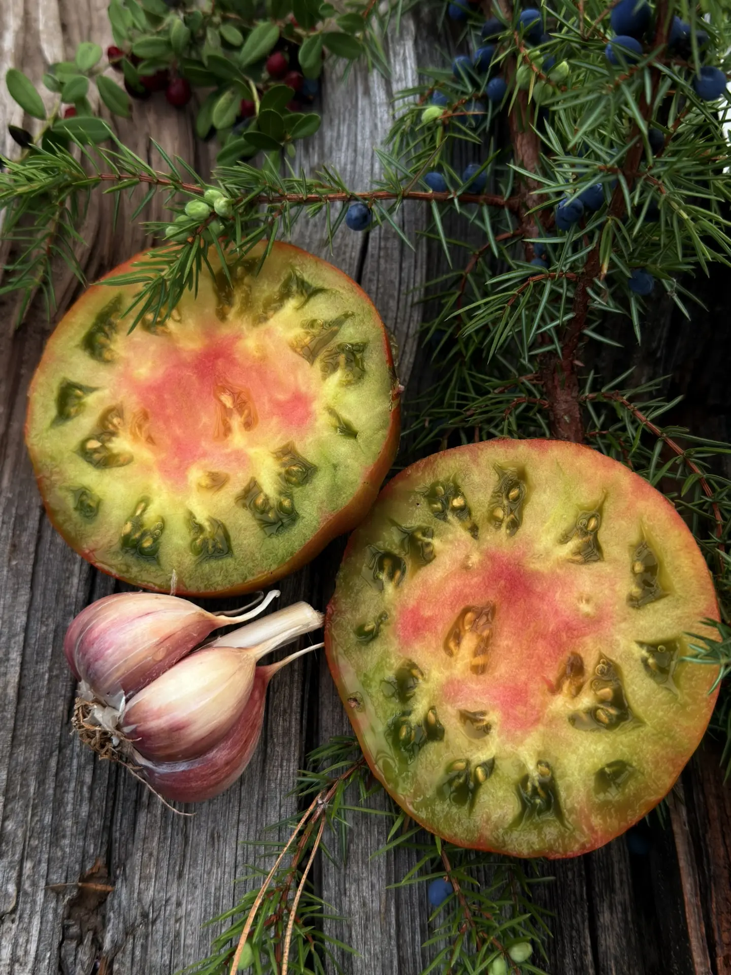 Индетерминантный, высокорослый (до 2 м), среднеранний сорт. Растения мощные отлично выдерживают богатый урожай крупных плодов. Для теплиц и ОГ. Рекомендуется формировать в 1-2 стебля с обязательным пасынкованием и подвязкой к опоре. Помидоры цвета охры, мякоть зеленая с красной сердцевиной и мраморными разводами, либо полностью зелёная. Вес плодов 300-800 грамм. Вкус превосходный, сладкий, немного пряный, без кислоты. Хороши для свежего потребления и приготовления соков, соусов.