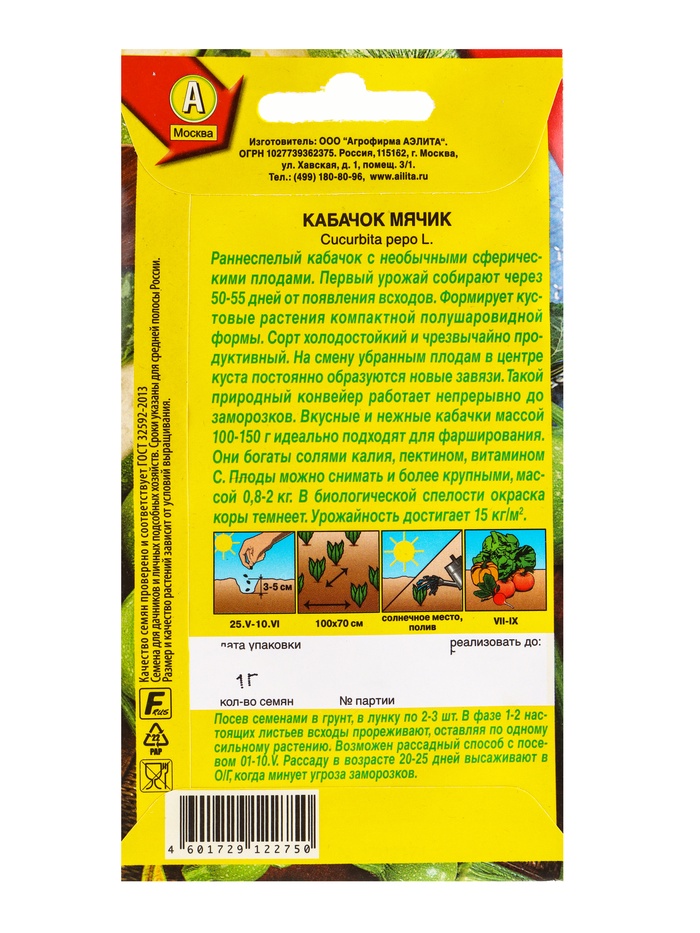 Набор семян Кабачок цуккини "Мячик", 5 шт.