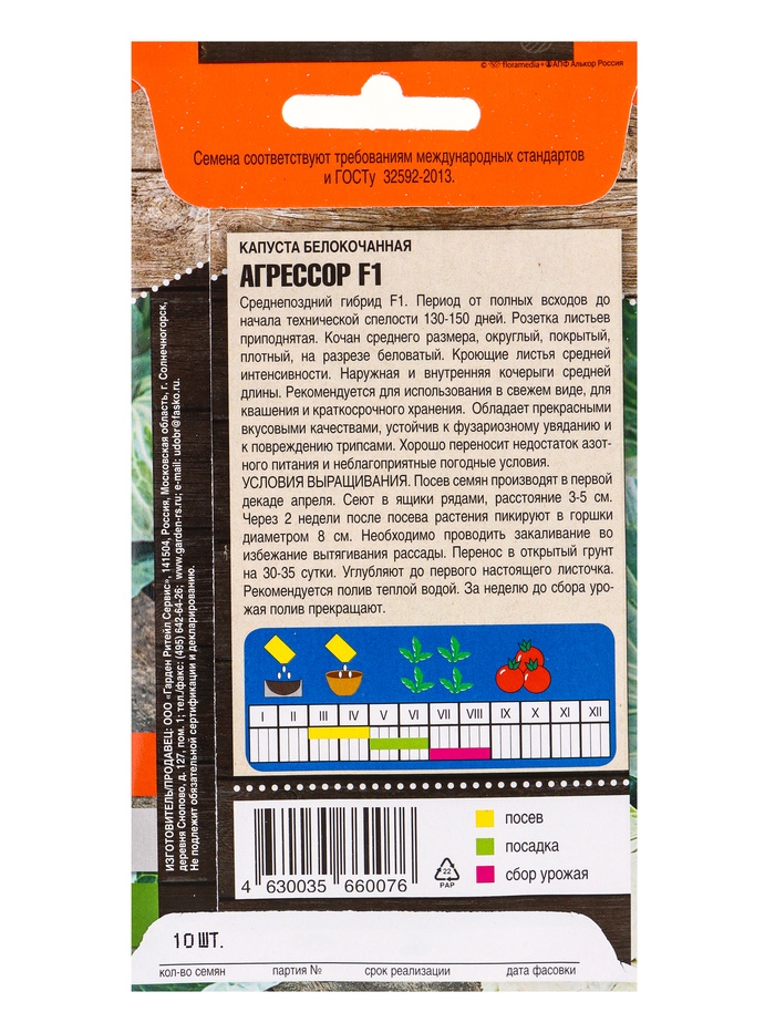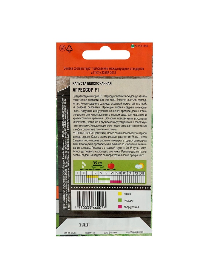 Набор семян Капусты белокочанной "Агрессор", F1, 4 шт.