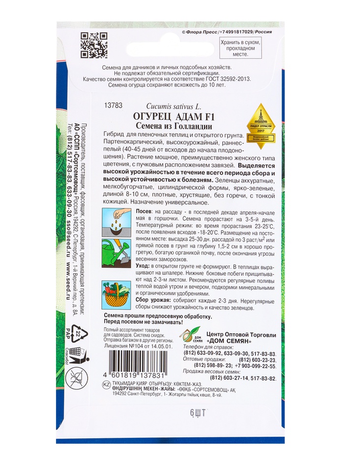 Набор семян огурца "Адам", F1, 4 шт.