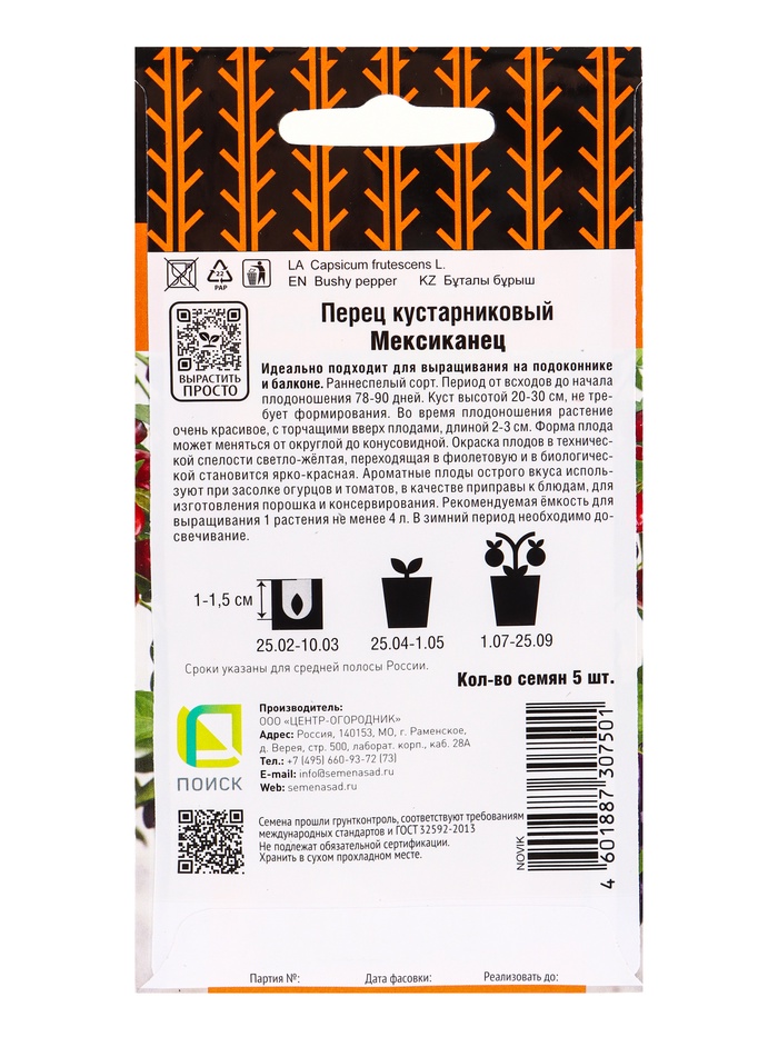 Набор семян Перец кустарниковый "Мексиканец", 5 шт.