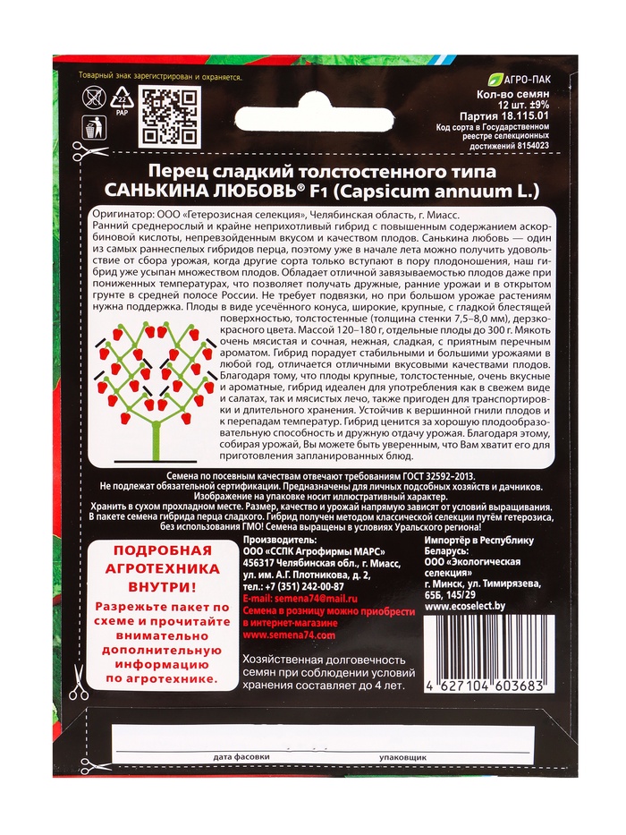 Набор семян Перец сладкий "Санькина любовь" F1, 4 шт.