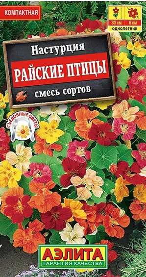 Компактная, кустовая настурция с ярким и обильным цветением. Важным достоинством смеси является то, что цветки (Ø 4-6 см) расположены выше листвы. Кусты полушаровидной формы, высотой 25-30 см. Растения тепло- и светолюбивые, неприхотливые в уходе. Хорошо смотрятся на клумбах, в рабатках и бордюрах. Подходят для контейнеров и балконных ящиков.