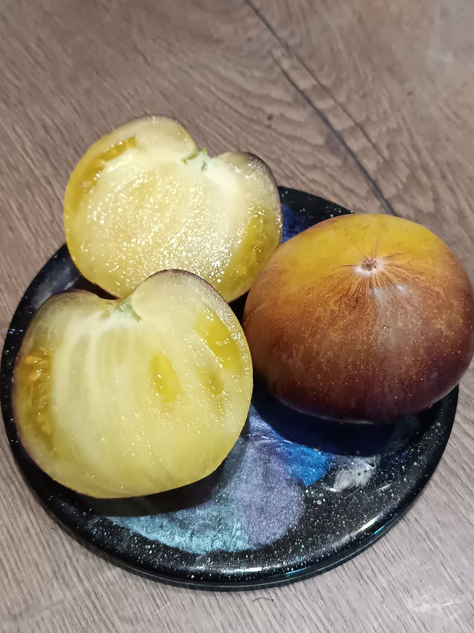 Очень интересный, вкусный, урожайный. Индет 1.8 м среднеспелый. плоды желтые, сердцевидные с анто напылением 150-300гр.очень сладкая сочная мякоть.