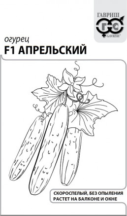 Скороспелый (45 -50 дней) партенокарпический гибрид, преимущественно женского типа цветения. Для лучшего плодообразования целесообразно опыление в первый месяц плодоношения. Дружная отдача урожая в первый месяц плодоношения - до 7-13 кг/кв.м. Для закрытого грунта. Пригоден для выращивания в комнатной культуре и на балконах. Зеленец цилиндрический, слабобугорчатый, зеленый, длиной 15-25 см, массой 200-250 г, не желтеет, хорошего вкуса. Обладает комплексной устойчивостью к болезням. Универсального назначения. Ограниченность бокового ветвления у гибрида исключает периодическое проведение работ по пасынкованию и прищипкам. Наиболее ценными свойствами гибрида Апрельский F1 - холодостойкость, дружное и продолжительное плодоношение, большие урожаи (до 24 кг/м2).