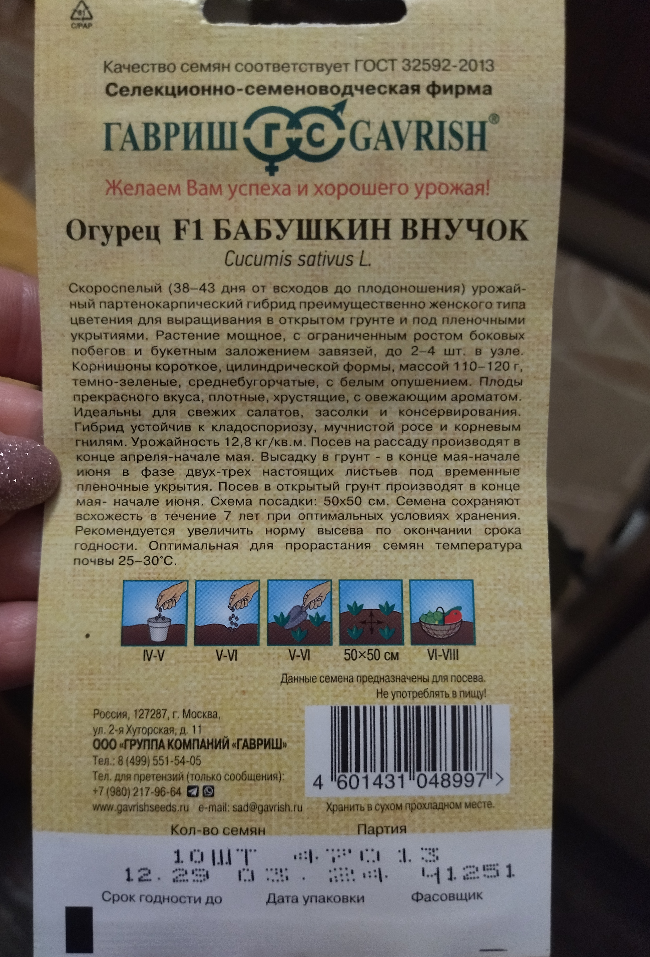 Отзывы и вопросы о товаре «Огурец Бабушкин внучок F1 10 шт ц/п Гавриш (парт), ранний, короткоплетистый»