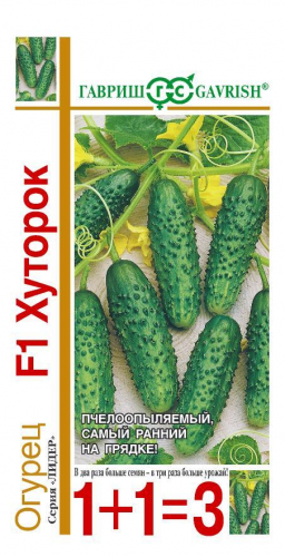 Скороспелый (от всходов до плодоношения 43-48 дней) пчелоопыляемый гибрид преимущественно женского типа цветения. Предназначен для выращивания в открытом грунте и под временными пленочными укрытиями. Сильнорослый, побегообразовательная способность средняя. Зеленец короткий (9-11 см), массой 80-100 г, бугорчатый, черношипый, без горечи. Плоды отлично подходят для переработки (засолка, маринование). Гибрид обладает генами устойчивости к корневым гнилям, настоящей и ложной мучнистым росам. Устойчив к неблагоприятным условиям выращивания. Плотность посадки 4-5 раст./м2. Урожайность 4-5 кг с растения.
