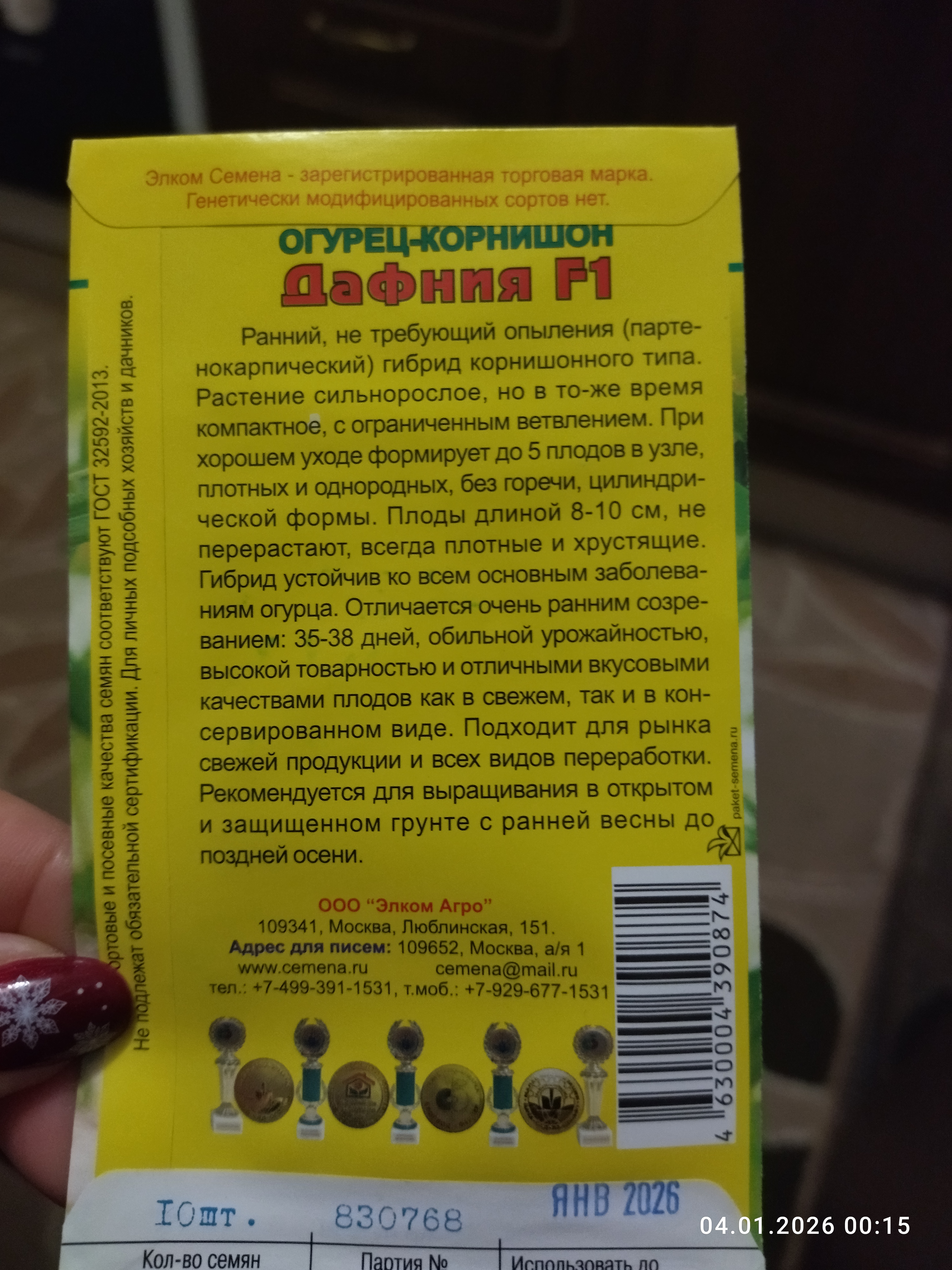 Отзывы и вопросы о товаре «55руб.70руб.Н.Х. Огурец Дафния F1 (10 сем.)»