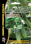 Скороспелый (39-42 дней от всходов до плодоношения) партенокарпический гибрид с пучковым заложением завязей (до 8 в одном узле!). Растение с мощной корневой системой и ограниченным ростом боковых побегов. Предназначен для выращивания в теплицах, под временными пленочными укрытиями и открытом грунте. Рекомендуется для сбора пикулей и корнишонов. Для получения пикулей – сбор производят ежедневно, корнишонов – через день. Зеленцы цилиндрические, длиной 10-12 см, мелкобугорчатые с белым опушением, темно-зеленые, массой 90-110 г. Плоды универсального назначения — отлично подойдут для консервирования. Устойчив к корневым гнилям, настоящей мучнистой росе, оливковой пятнистостии относительно устойчив к ложной мучнистой росе.