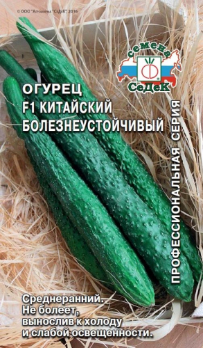 Партенокарпический гибрид китайского сортотипа. Его особенностью является преобладание женских цветков на растении при минимальном числе мужских. В отличие от других подобных гибридов это обеспечивает более высокую урожайность. Период от появления всходов до сбора первых плодов 40-50 дней. Огурцы ароматные, хрустящие и сочные, длиной до 50 см! Продуктивность стабильная, даже в условиях средней полосы – вплоть до первых заморозков. Гибрид обладает комплексной устойчивостью к заболеваниям культуры.