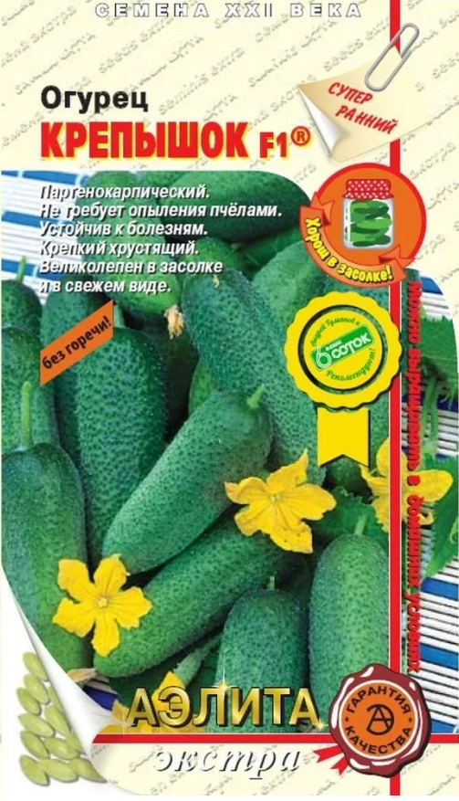 Очень ранний гибрид преимущественно женского типа цветения для открытого грунта, пленочных укрытий и стеклянных теплиц, частично самоопыляемый. Плети средней длины. Плоды корнишонного типа: зеленец ярко-зеленый, мелкобугорчатый, овально-цилиндрический, масса 77-98 г, длина 8,5-10,5 см, соотношение длины к диаметру 3:1. Гибрид устойчив к вирусу огуречной мозаики, оливковой пятнистости, настоящей мучнистой росе, толерантен к ложной мучнистой росе. Отличный вкус без горечи. Отличается повышенной урожайностью и долгим периодом плодоношения. Рекомендуется для употребления в свежем виде, для засолки и консервирования