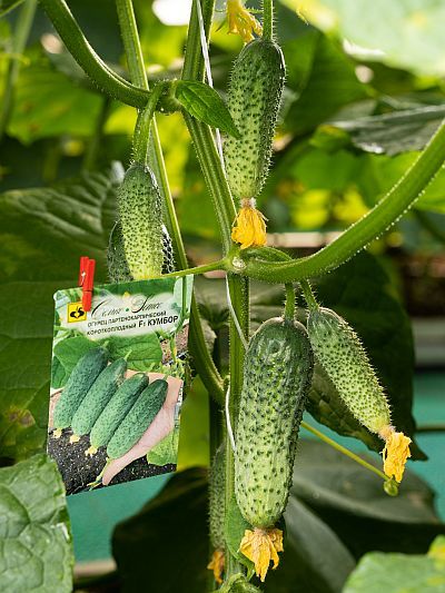 Огурец Кумбор F1 - ранний партенокарпический гибрид корнишонного типа для всех видов теплиц, парников и для открытого грунта. От всходов до начала плодоношения 38–43 дня. Растение среднеплетистое, боковые побеги короткие. В одном узле формируется 1–2, изредка 3 плода. Плоды цилиндрические, плотные, среднебугорчатые, темно-зеленые, со сложным белым опушением, длиной 9–11 см, диаметром 3–3,5 см, массой 50–90 г, генетически без горечи. Вершина плода зеленая, долго не желтеет. Вкусовые качества и товарность высокие, относительная устойчивость к стрессовым условиям, жаростойкость. Огурец Кумбор F1 устойчив к мучнистой росе (Px), бактериозу (Pst), толерантен к пероноспорозу (Pcu). Рекомендуется для выращивания в защищенном грунте в первом и втором обороте, а также в открытом грунте. Плотность посадки 2,8–3,5 раст./м. Используется для свежего потребления, консервирования и засолки. Урожайность в теплице 16–19 кг/м, в открытом грунте 12–14 кг/м.