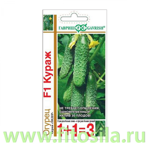 Огурец Кураж F1: Скороспелый партенокарпический гибрид (от всходов до плодоношения 45-50 дней), женского типа цветения, предназначен для выращивания в пленочных теплицах. Растения сильнорослые, побегообразовательная способность средняя. В узлах образуется по 2-4 завязи (до 5-6 штук). Зеленец темно-зеленый со светлыми полосами, длиной 12-15 см, массой 120-130 г, бугорчатый, белошипый, универсального использования. Вкусовые качества высокие, без горечи. Плотность посадки 2,5-3,0 растения/м2. Относительно устойчив к основным заболеваниям огурца. Урожайность 6,0-8,0 кг/растение.