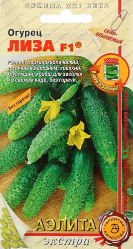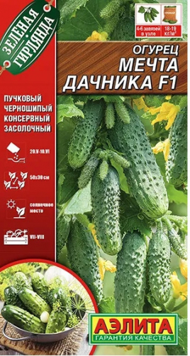 Очень ранний партенокарпический гибрид универсального грунта, самоопыляемый. Гибрид отличается повышенной урожайностью и долгим периодом плодоношения. Устойчив к вирусу огуречной мозаики, оливковой пятнистости, настоящей мучнистой росе, толерантен к ложной мучнистой росе. Растения среднеплетистые. Зеленец ярко-зеленый, крепкий, хрустящий, крупнобугорчатый, овально-цилиндрический, масса 80-100 г, длина 7-9 см, соотношение длины к диаметру 3,1:1. Не содержит горечи. Вкусовые качества свежих и консервированных плодов отличные.