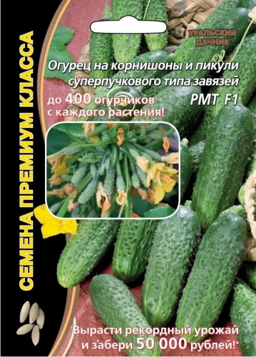 Среднеранний (40-48 дней от всходов до плодоношения) пчелоопыляемый гибрид женского типа цветения, предназначен для выращивания в открытом грунте и под временными пленочными укрытиями. Зеленец цилиндрический, слегка вытянутый к основанию, зеленый со светлыми полосами, черно- и бурошипый, среднебугорчатый, длиной 9-10 см, массой 80-100 г. Предназначен для засолки и консервирования. Урожайность одного растения до 5 кг. Устойчив к антракнозу, относительно устойчив к ложной мучнистой росе, бактериозу и оливковой пятнистости.