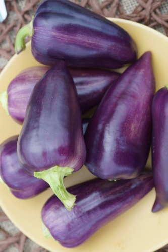 Оригинальные сиреневые плоды в технической спелости, темно-красные – в биологической. Плод пониклый, конусовидный, массой 57-150 г, толщина стенки достигает 8-11 мм. Хорошие вкусовые и товарные качества.