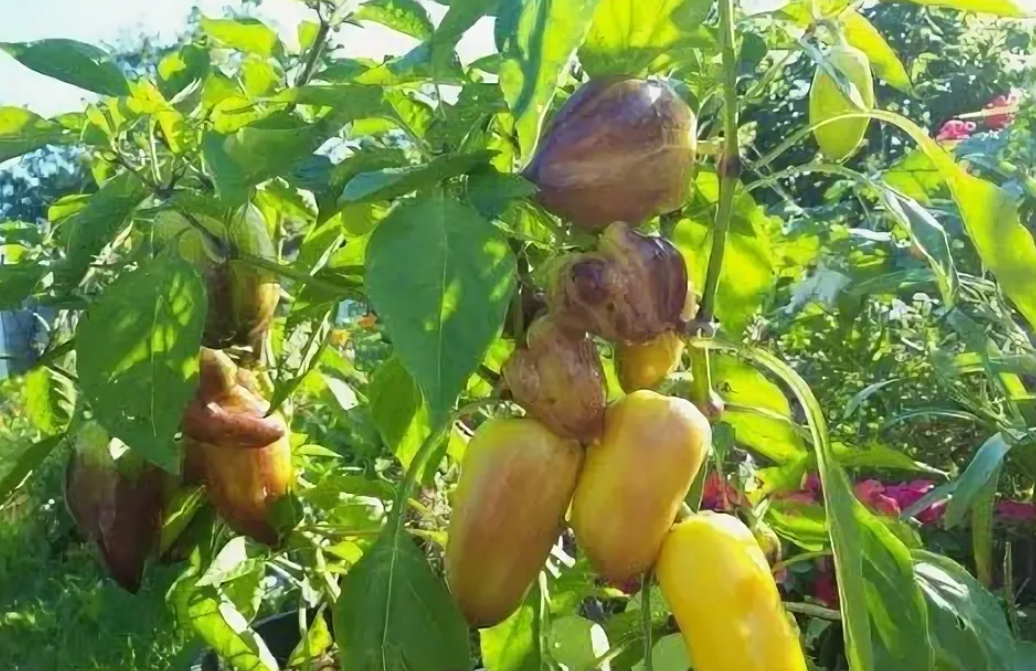СОЛНЫШКО РАДУЖНОЕ — оправдывает своё название. Наблюдать за тем, как плоды меняют свою расцветку на кусте очень интересно. В технической спелости они зелёно -фиолетового цвета. Созревая, перчинки становятся оранжевые с фиолетово- красным оттенком. Вкус у перцев превосходный, перцы очень сладкие, сочные, толщина стенки от 9-10 мм, вес плода от 100 до 200 грамм, кустики небольшие от 50 — 60 см. Сорт раннеспелый.