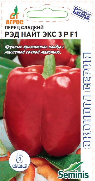 Перец Ред Найт ЭКС 3 Р F1, 5 шт ц/п Агрос (Голландия) (среднеранний, стенка 10 мм)