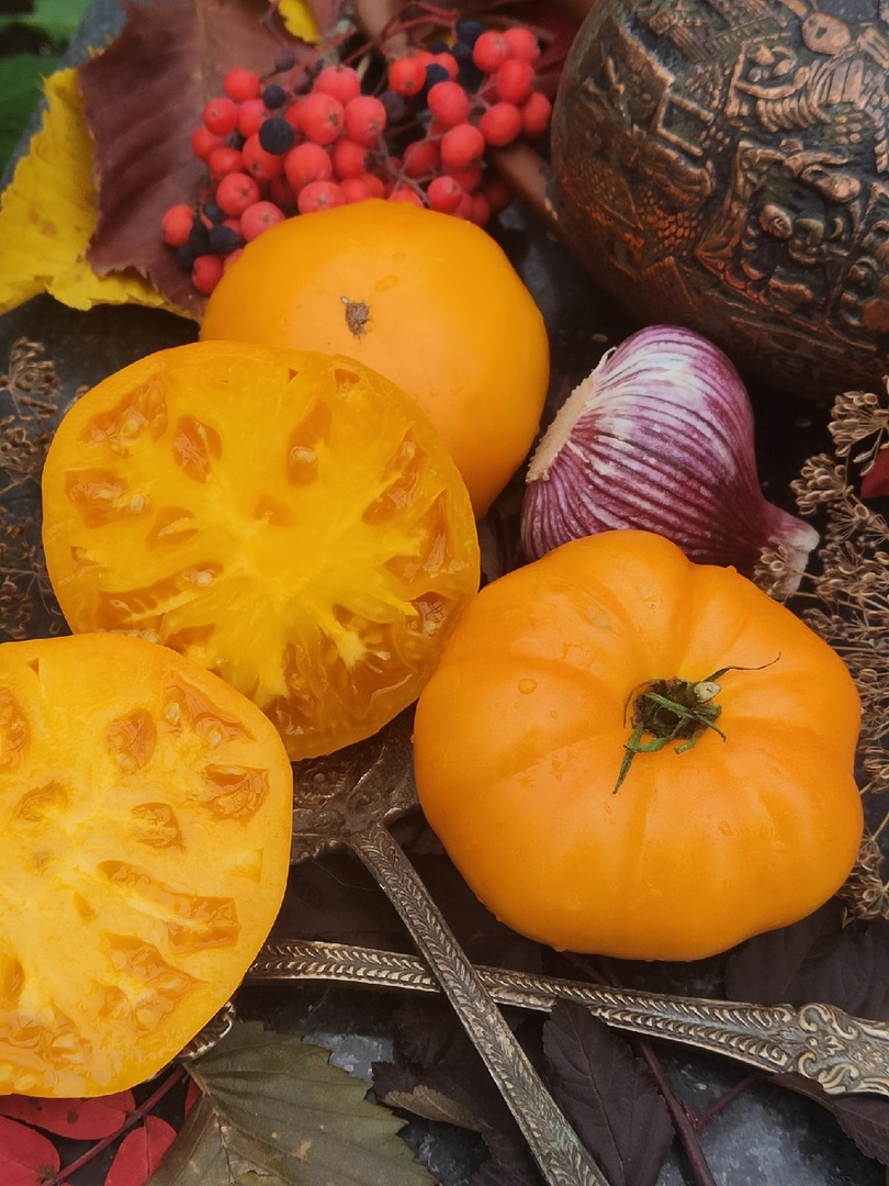 Семейная реликвия, выращенная Томасом Джефферсоном в 1781 г. Плоды округло-плоские, насыщенного оранжевого цвета, с толстой кожицей, мясистые, сочные, сладкие, с отличным ароматом, характерным для оранжевых сортов томатов. Масса плодов 170 - 280 г. Отличный сорт для рыночной торговли. При теплой погоде вкус получается лучше. Среднеспелый, высокоурожайный сорт. Кусты не густые высотой до 1,5 м.