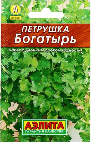 Позднеспелый листовой сорт (60-70 дней от всходов до уборки на зелень) сорт для выращивания в открытом и защищенном грунте. Розетка крупная, высота 25-40 см, формируется до 25 листьев. Листья темно-зеленые, с крупными долями, очень ароматные, хорошо отрастают после срезки. Рекомендуется для потребления в свежем, сушеном и консервированном виде. Уборку листьев производят периодически, по мере необходимости.