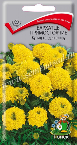 Агротехника. Семена бархатцев прямостоячих Купид голден оранж (kupid golden oranzh) сеют в защищенный грунт на рассаду в конце марта-начале апреля. Сеянцы высаживают на клумбу в конце весны, когда пройдет волна последних заморозков. Прекрасный сорт Купид голден оранж имеет оригинальной формы соцветия, напоминающие хризантемы. Апельсиново-оранжевую махровую серединку огибает кокетливая юбочка из длинных лепестков. Диаметр цветков — около 8 сантиметров.