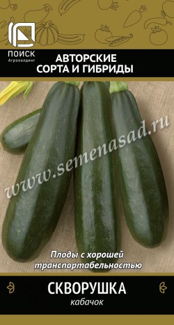 Плоды с хорошей транспортабельностью. Раннеспелый сорт. Период от всходов до плодоношения 40-45 дней. Растение кустовое, компактное. Плод цилиндрический, слаборебристый, темно-зеленый, с рисунком в виде крапинок. Масса 0,9-1,2 кг. Мякоть белая или светло-жёлтая. Вкусовые качества отличные. Сорт засухо- и холодоустойчив.