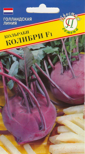 Ранний гибрид для всех периодов выращивания в открытом и защищённом грунте. Вегетационный период – 70 дней от высадки рассады. Стеблеплод плоскоокруглый фиолетового цвета, не образует волокон. Масса стеблеплода 700-900 гр. Обладает отличными вкусовыми качествами. Рекомендуется для использования в свежем виде и домашней кулинарии. Кольраби выращивается так же как и белокочанная капуста, через рассаду. Схемы внесения удобрений и защиты растений аналогичны белокочанной капусте. Кольраби без листьев может храниться короткое время, стеблеплоды с листьями не хранение не закладывают.