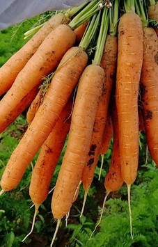 Рекомендуется для использования в свежем виде и зимнего хранения. Гибрид среднеспелый. Розетка листьев от полустоячей до раскидистой. Лист средней длины до длинного, зелёной окраски, от слабо до среднерассеченного. Корнеплод короткий до средней длины, поверхность слаборебристая, удлиненно-конической формы со слабым сбегом и тупым основанием (сортотип Берликум/Нантская). Форма плечиков - плоская до округлых без антоциановой окраски, позеленение плечиков очень маленькое. Сердцевина и кора оранжевые. Масса корнеплода - 120-175 г. Вкусовые качества хорошие и отличные.