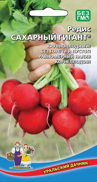 Скороспелый, высокоурожайный сорт. Корнеплоды округлые, ярко-красные, крупные, до 5 см в диаметре, без пустот и грубых волокон, с тонкой кожицей, массой 30-40 г. Мякоть белая, сочная, очень нежная, без горечи, долго не дрябнет. Отличается небольшой ботвой и быстрым наливом крупных корнеплодов.