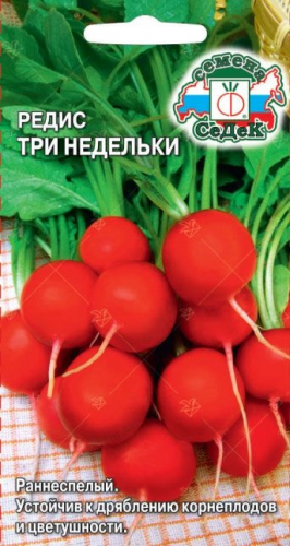 Раннеспелый (20-25 дней от всходов до технической спелости) сорт. Розетка листьев полупрямостоячая. Черешок со слабой антоциановой окраской. Корнеплод округлый, красный, головка выпуклая. Мякоть белая, плотная, сочная. Масса корнеплода 20-23 г. Устойчив к растрескиванию и цветушности. Посев в грунт производится в конце апреля-начале мая. Для позднелетнего и осеннего употребления семена редиса высевают с 15-20 июля по конец августа.