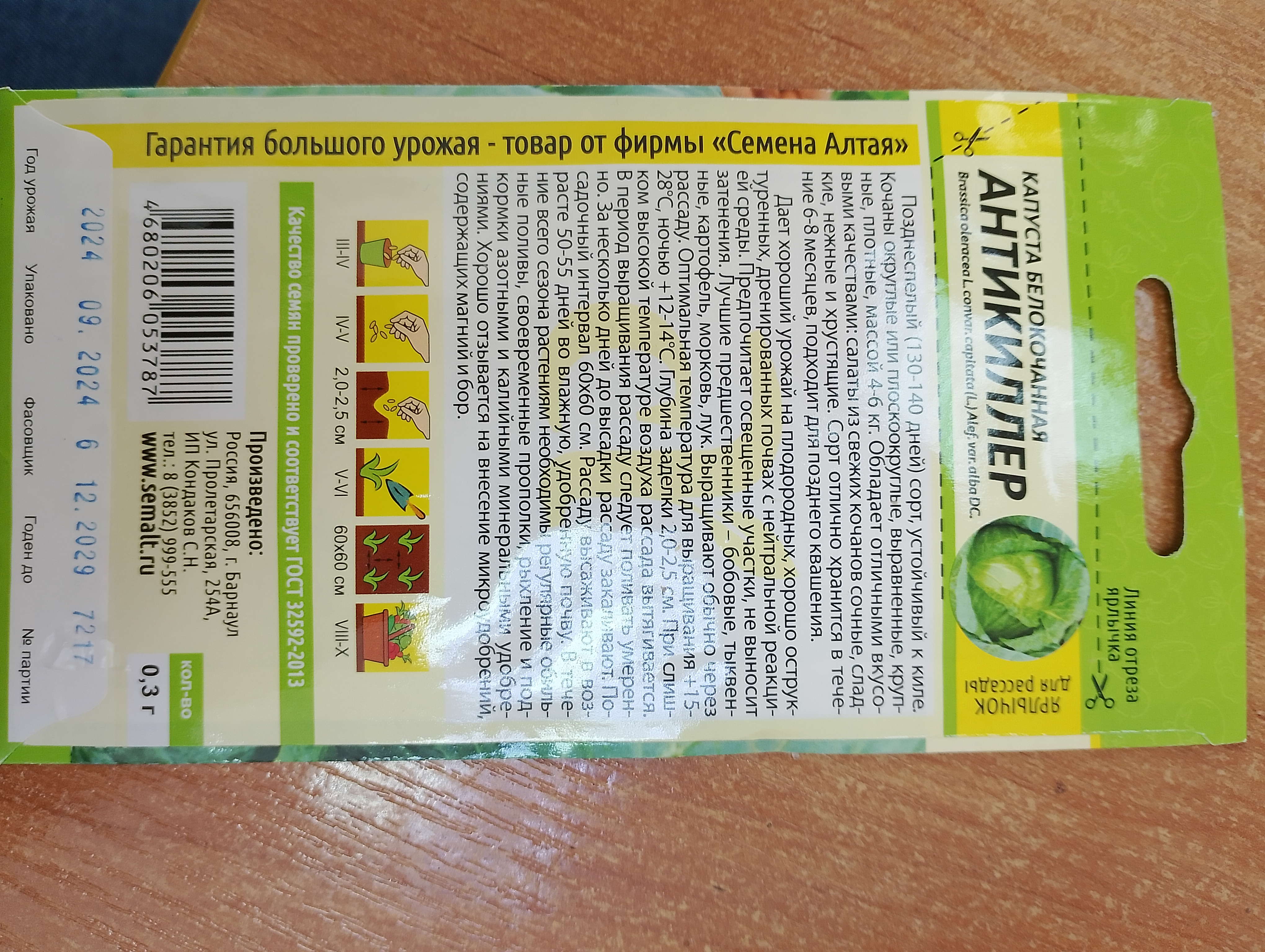 Отзывы и вопросы о товаре «Капуста Антикиллер б/к хранение и квашение 0,3г»