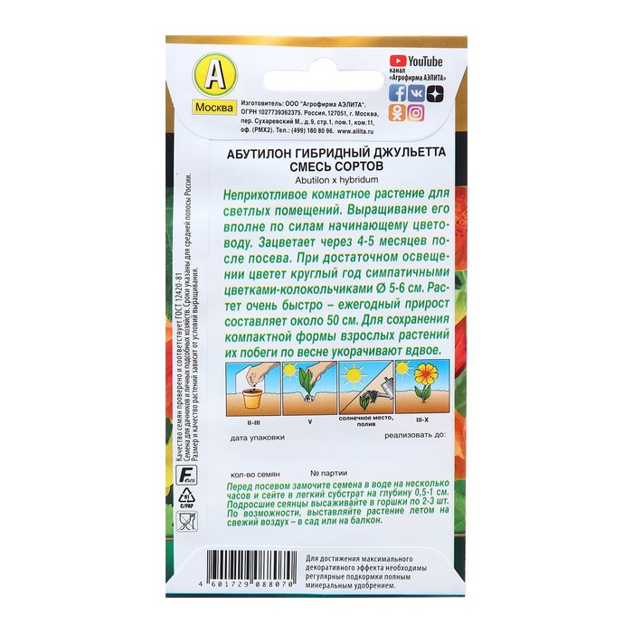 Семена Абутилон гибридный Джульетта, смесь сортов Мн Золотая серия 15 шт